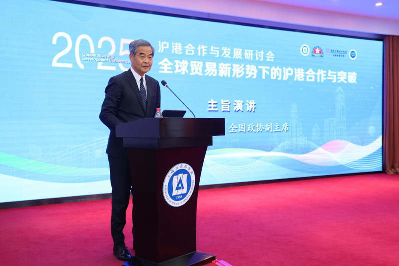 11月18日,2025年沪港合作与发展研讨会在上海社科院隆重举行。此次研讨会主题为“全球贸易新形势下的沪港合作与突破”。全国政协副主席梁振英,中国(深圳)综合开发研究院首席专家樊纲,上海社会科学院原院长张道根,上海实业(集团)有限公司董事长冷伟青等出席会议并发表主旨演讲。上海市委宣传部副部长、上海社会科学院党委书记权衡,香港明天更好基金执行委员会主席陈启宗分别致辞。院党委副书记姚建龙主持大会主旨演讲环节,副院长吴雪明、刘芸出席会议。